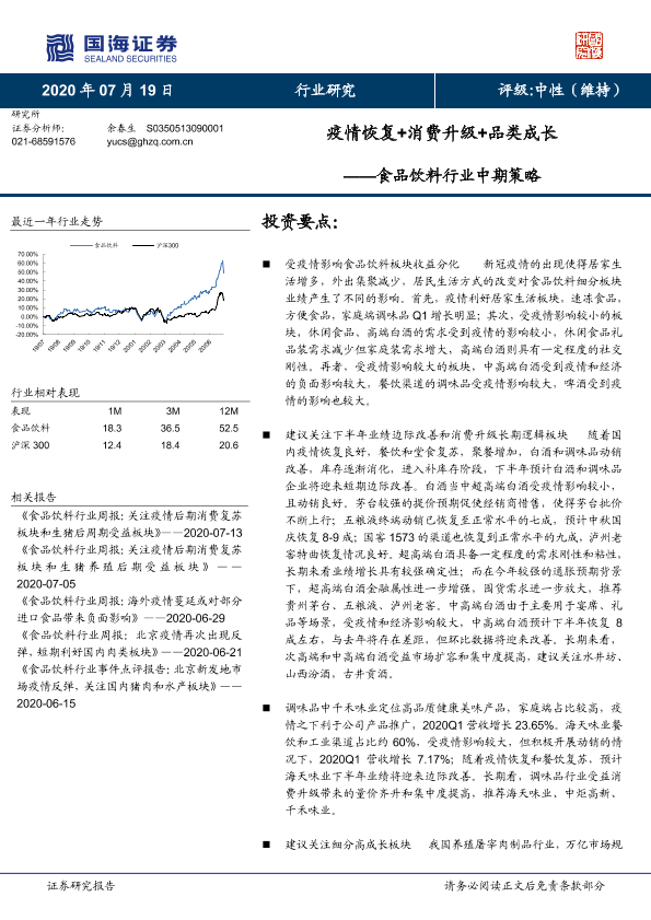 【国海证券】【20200719】食品饮料行业中期策略:疫情恢复+消费升级+品类成长-29页