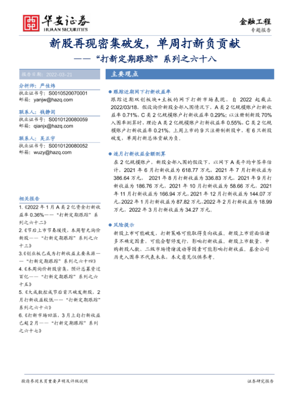 【华安证券】【20220321】“打新定期跟踪”系列之六十八:新股再现密集破发,单周打新负贡献-23页