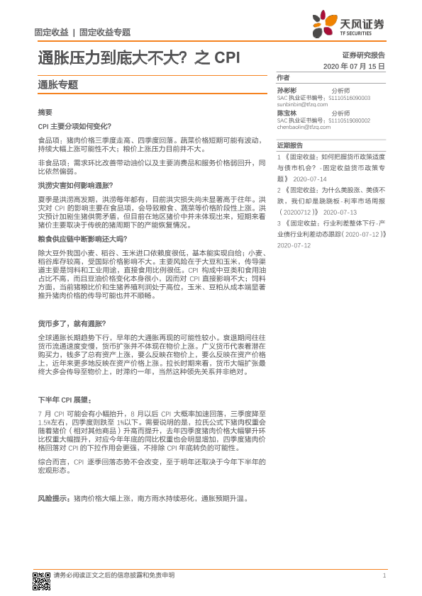【天风证券】【20200715】通胀压力到底大不大?之CPI-19页