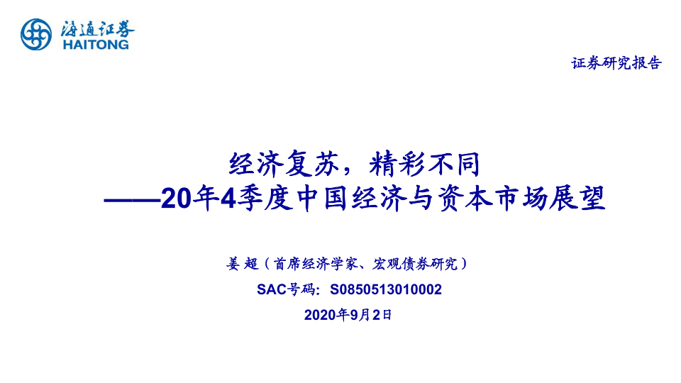 【海通证券】【20200902】2020年Q4中国经济与资本市场展望:经济复苏,精彩不同-48页