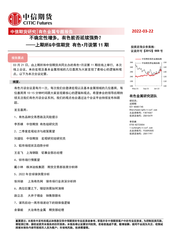 【中信期货】【20220322】不确定性增多,有色能否延续强势?-22页