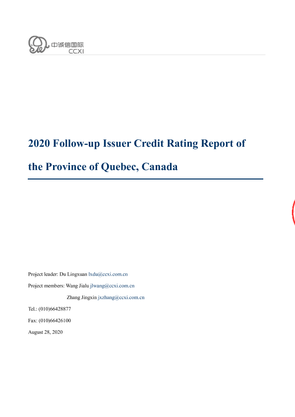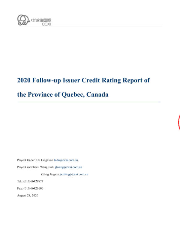 【中诚信国际】【20200828】中诚信国际-加拿大魁北克省2020年后续发行人信用评级报告-14页