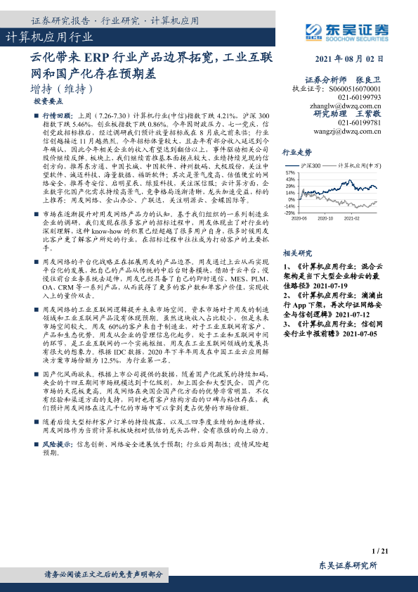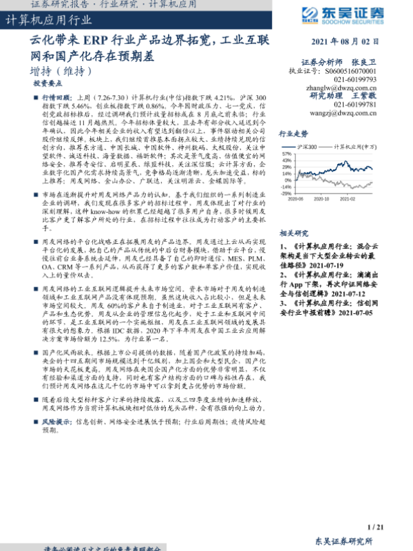 【东吴证券】【20210802】计算机应用行业:云化带来ERP行业产品边界拓宽,工业互联网和国产化存在预期差-21页
