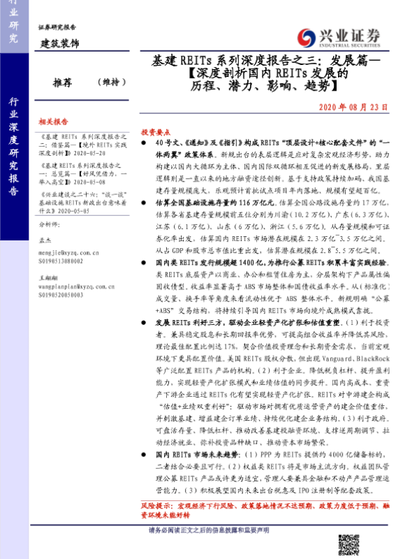 【兴业证券】【20200823】基建 REITs系列深度报告之三:发展篇— 【深度剖析国内 REITs发展的历程、潜力、影响、趋势】-47页