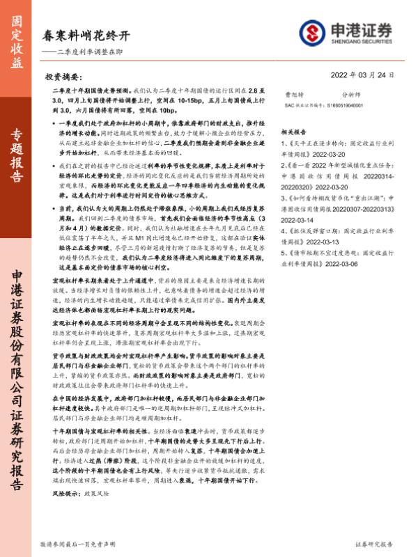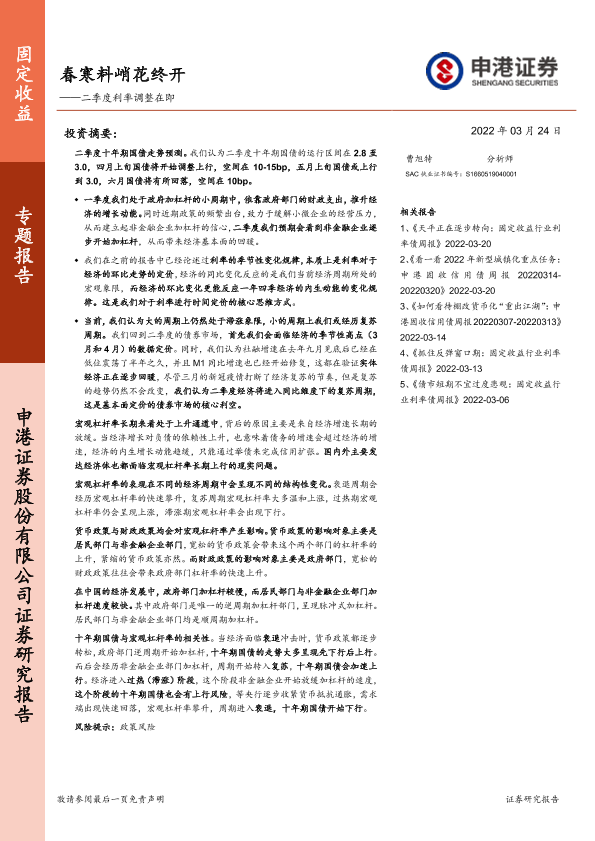 【申港证券】【20220324】二季度利率调整在即:春寒料峭花终开-22页