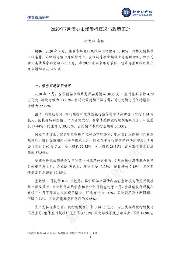 【新世纪评级】【202008】2020年7月债券市场发行概况与政策汇总-7页