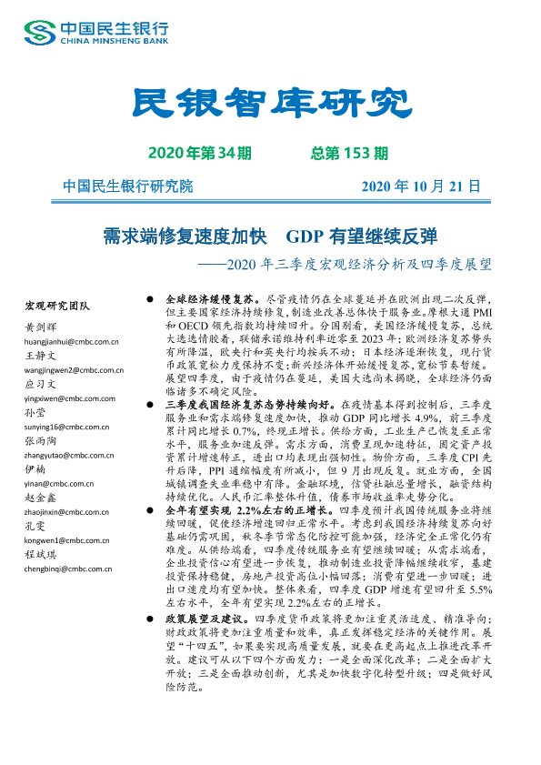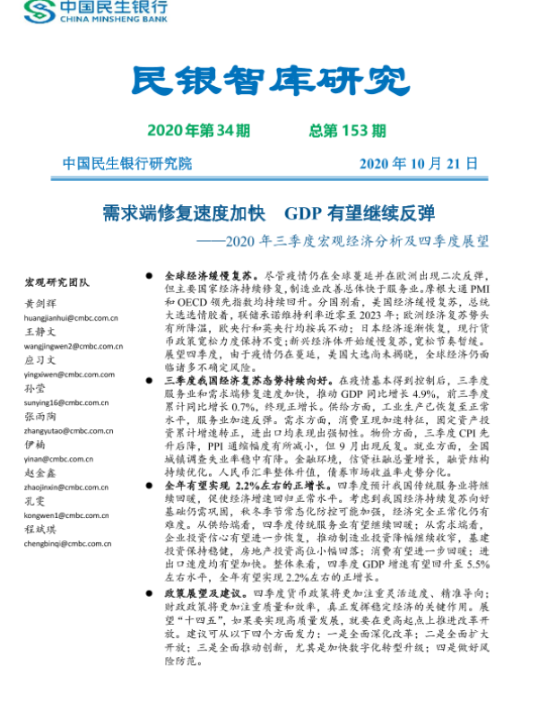 【中国民生银行研究院】【20201021】2020年三季度宏观经济分析及四季度展望-45页
