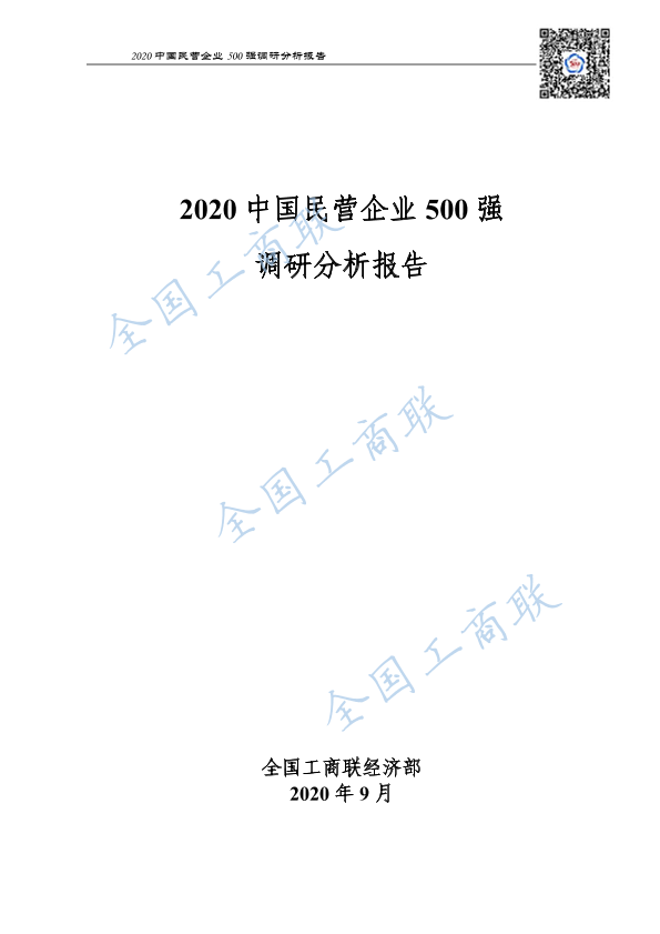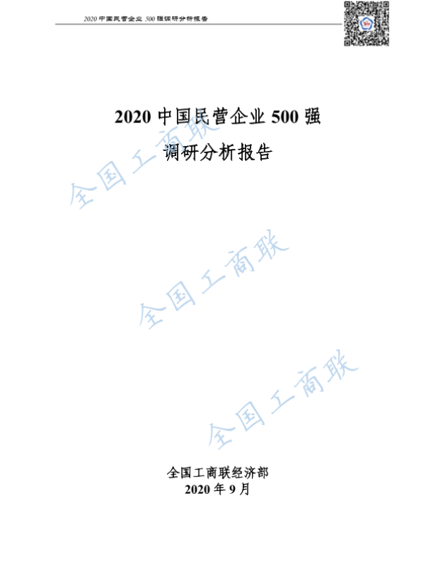 【全国工商联经济部】【202009】2020中国民营企业500强调研分析报告-185页