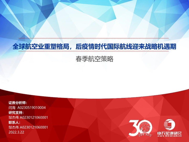 【申万宏源】【20220322】交通运输行业春季航空策略:全球航空业重塑格局,后疫情时代国际航线迎来战略机遇期-46页