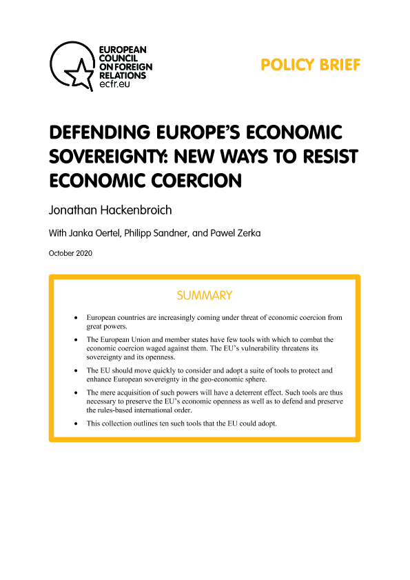 【欧洲对外关系委员会】【202010】中美两极竞争中如何捍卫欧洲的经济主权:抵制经济胁迫的新方法-50页