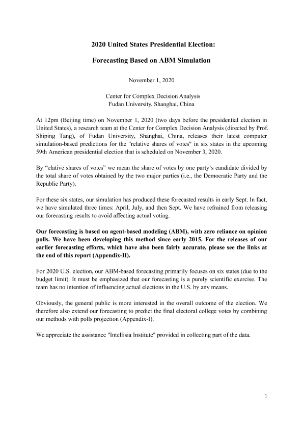 【复旦大学复杂决策分析中心】【202011】2020年美国总统选举预测:基于ABM模拟-6页