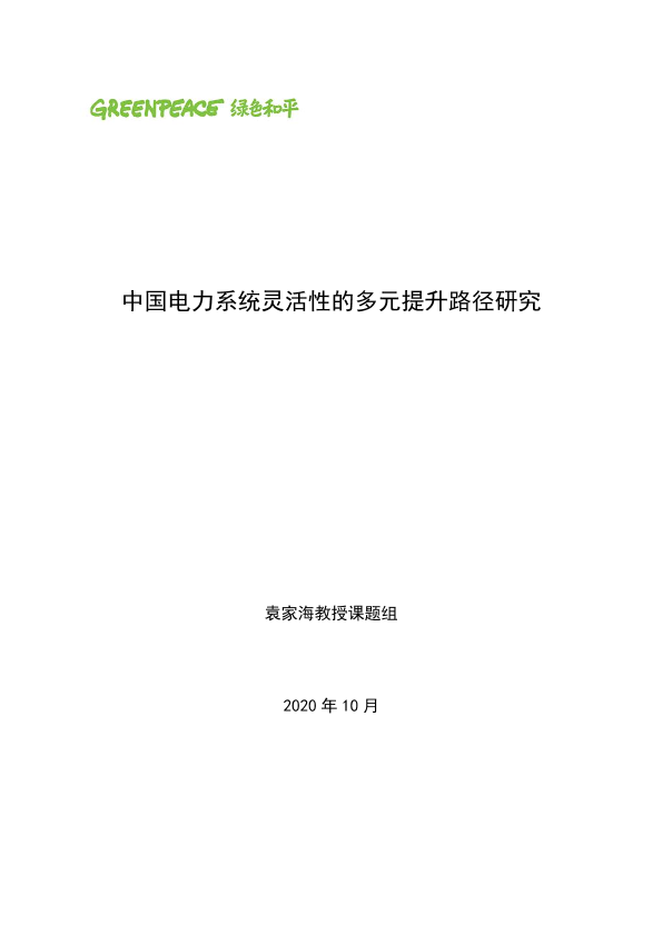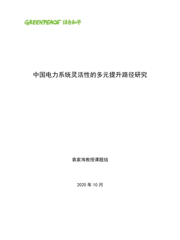 【绿色和平】【202010】中国电力系统灵活性的多元提升路径研究-52页