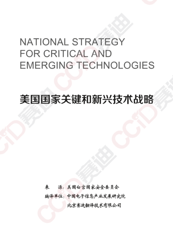 【美国白宫国家安全委员会】【2020】美国国家关键和新兴技术战略-14页