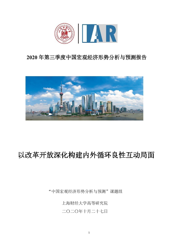 【上海财经大学高等研究院】【20201027】2020Q3中国宏观经济形势分析与预测报告-30页