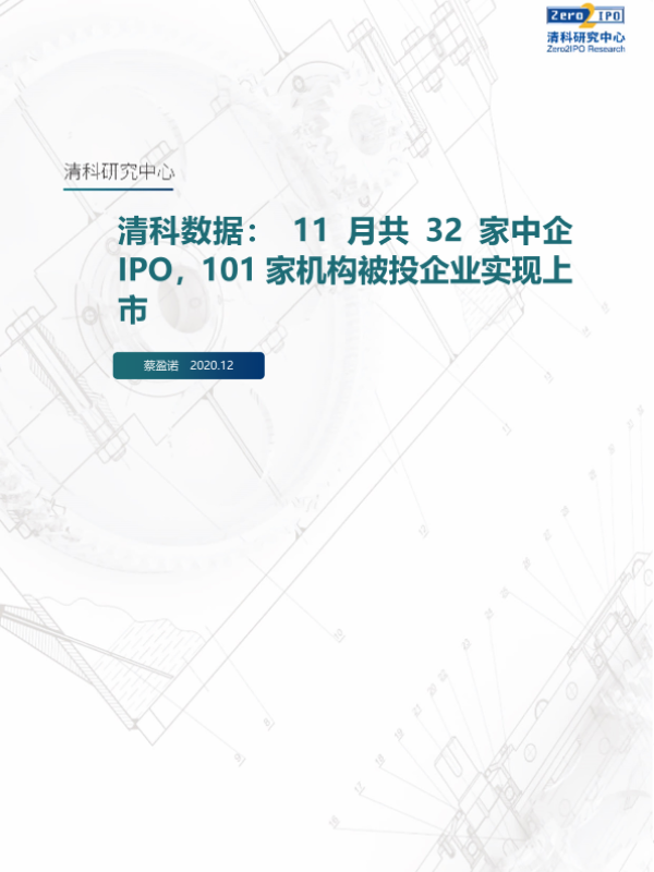 【清科研究中心】【202012】清科数据 11月共32家中企IPO,101家机构被投企业实现上市-15页