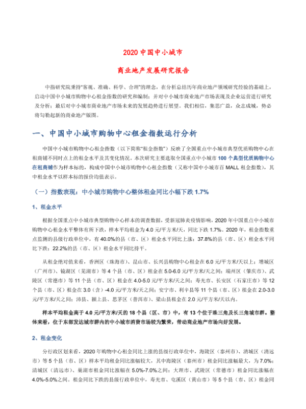 【中指研究院】【202012】2020中小城市商业地产发展研究报告-18页