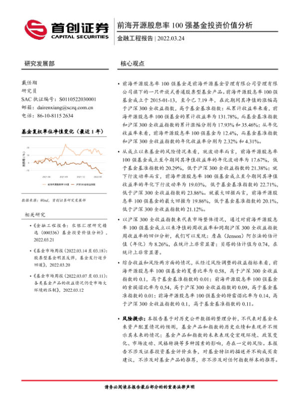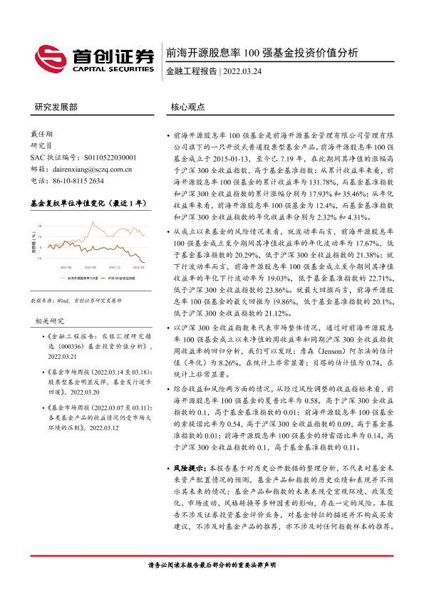 【首创证券】【20220324】前海开源股息率100强基金投资价值分析-16页