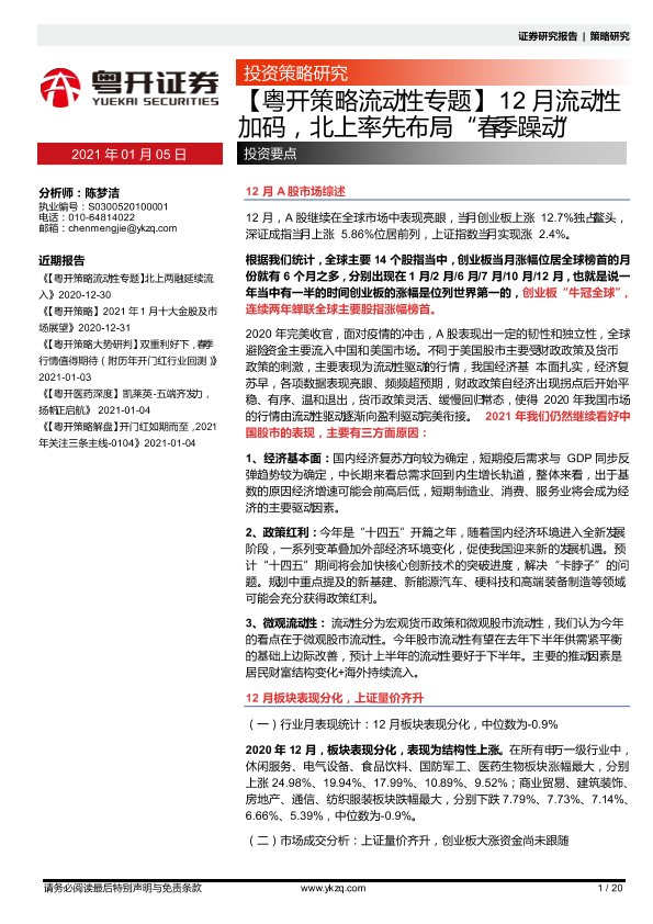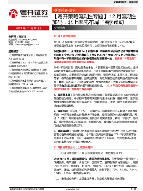 【粤开证券】【20210105】【粤开策略流动性专题】12月流动性加码,北上率先布局“春季躁动”-20页