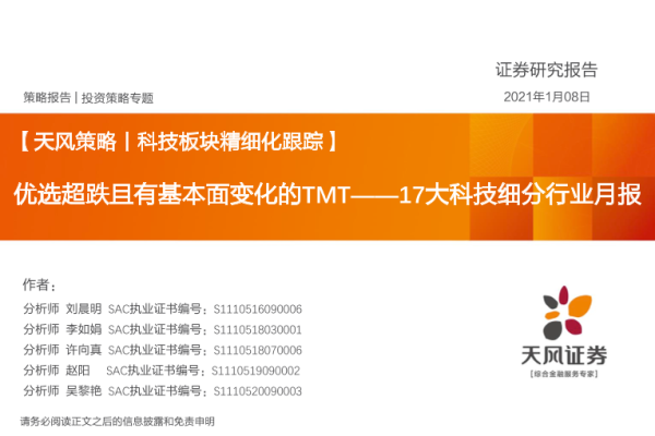 【天风证券】【20210108】17大科技细分行业月报:优选超跌且有基本面变化的TMT-23页