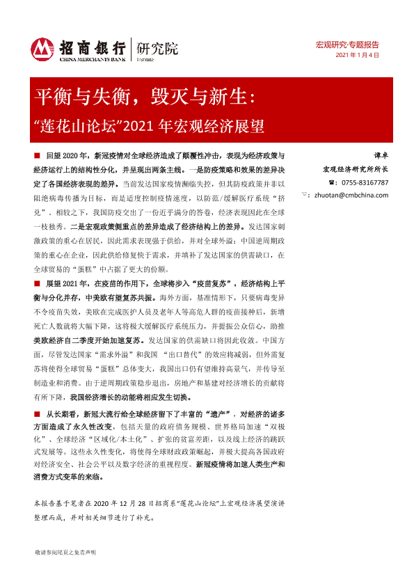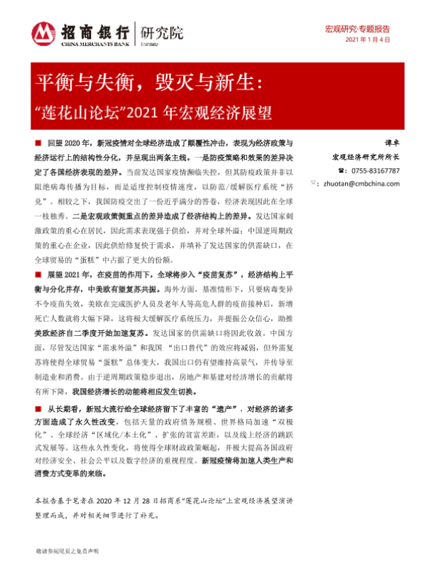 【招商银行】【20210104】“莲花山论坛”2021年宏观经济展望:平衡与失衡,毁灭与新生-22页