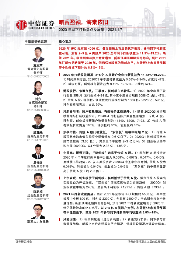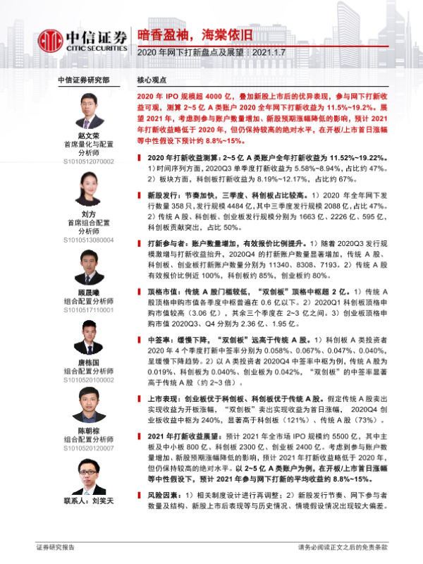 【中信证券】【20210107】2020年网下打新盘点及展望:暗香盈袖,海棠依旧-12页