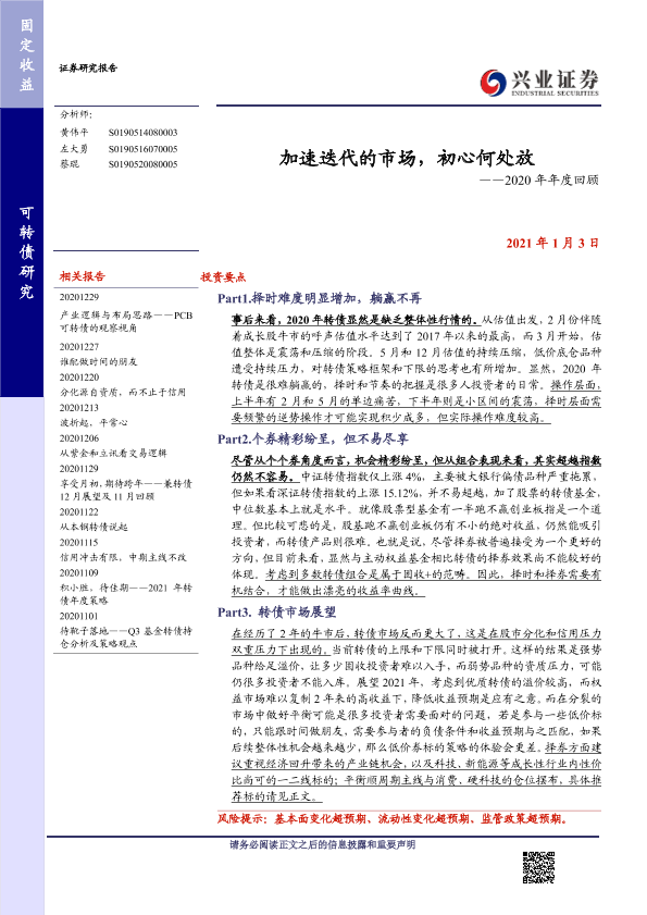 2020年度 可转债 市场回顾 投资策略 金融分析