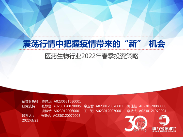 【申万宏源】【20220323】医药生物行业2022年春季投资策略:震荡行情中把握疫情带来的“新”机会-30页