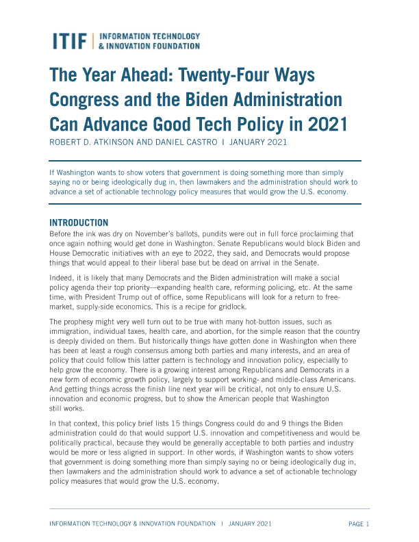 【INFORMATION TECHNOLOGY & INNOVATION FOUNDATION】【202101】Twenty-Four Ways Congress and the Biden Administration Can Advance Good Tech Policy in 2021-8页