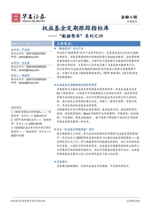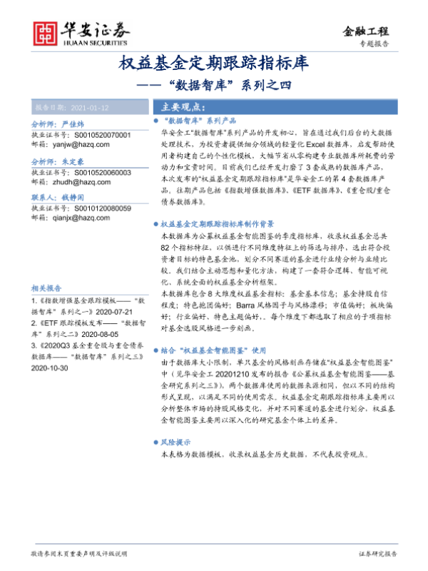 【华安证券】【20210112】“数据智库”系列之四:权益基金定期跟踪指标库-20页