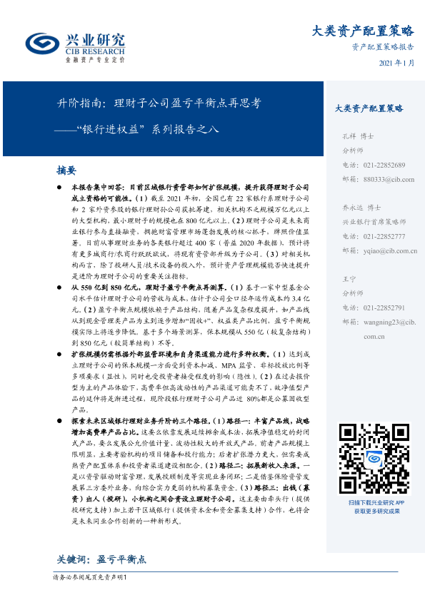 【兴业研究】【20210112】“银行进权益”系列报告之八:升阶指南,理财子公司盈亏平衡点再思考-14页