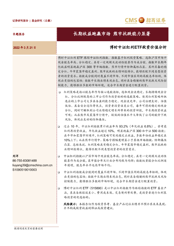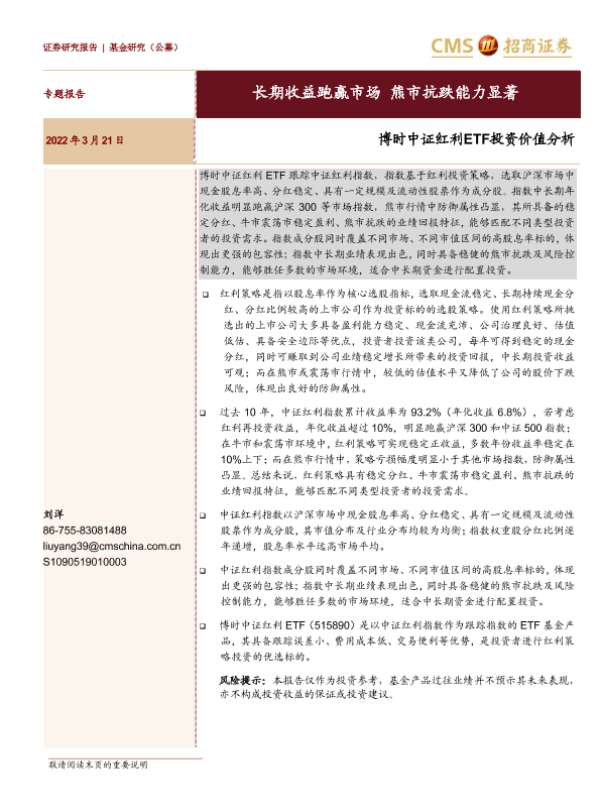 【海通证券】【20220321】博时中证红利ETF投资价值分析:长期收益跑赢市场,熊市抗跌能力显著-17页