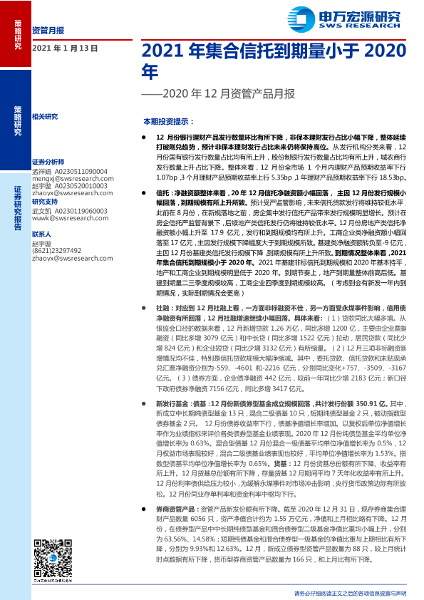 【申万宏源】【20210113】2020年12月资管产品月报:2021年集合信托到期量小于2020年-12页