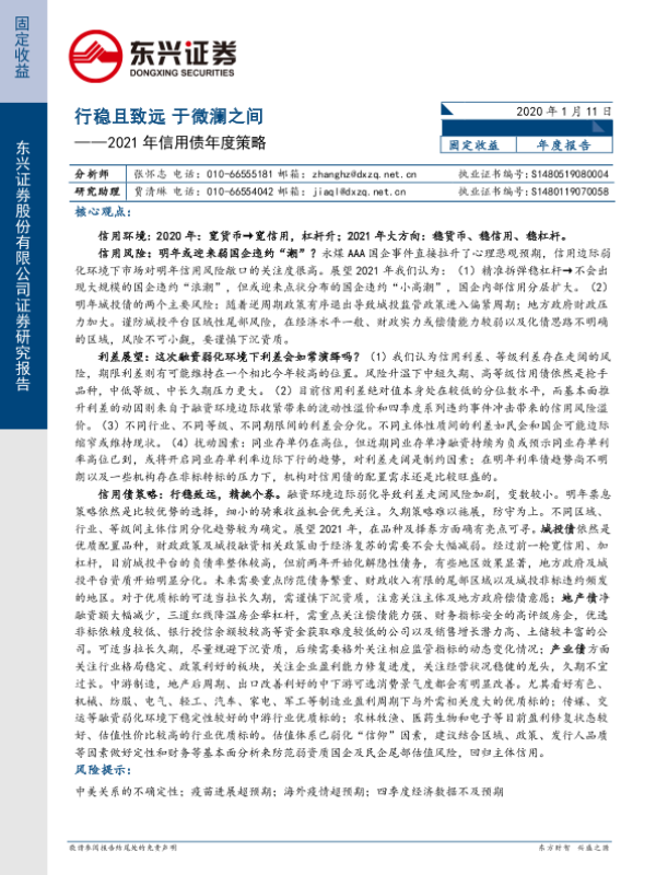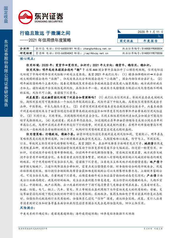 【东兴证券】【20210111】2021年信用债年度策略:行稳且致远,于微澜之间-29页