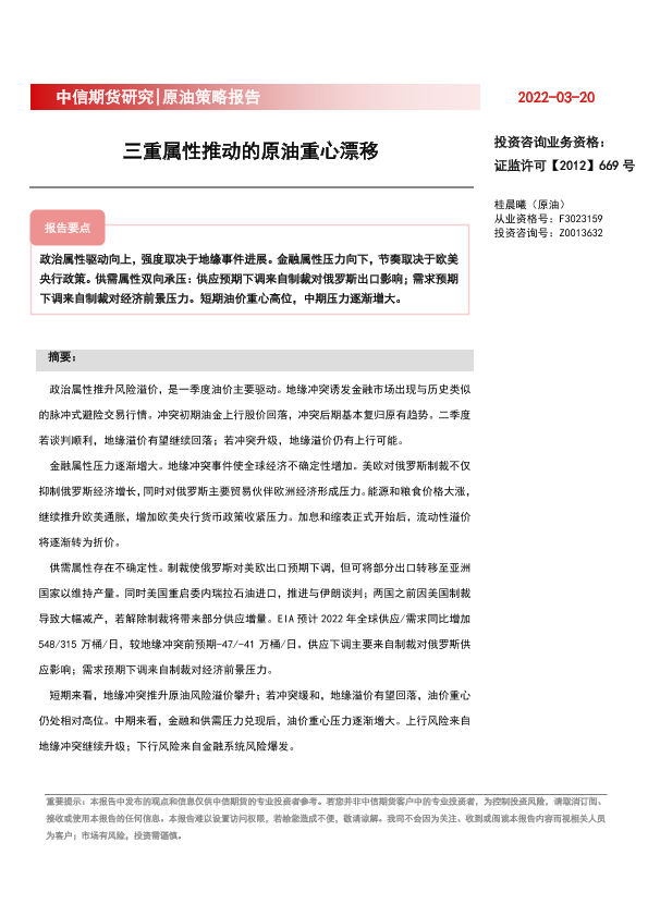 【中信期货】【20220320】原油策略报告:三重属性推动的原油重心漂移-21页