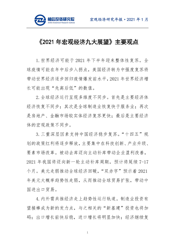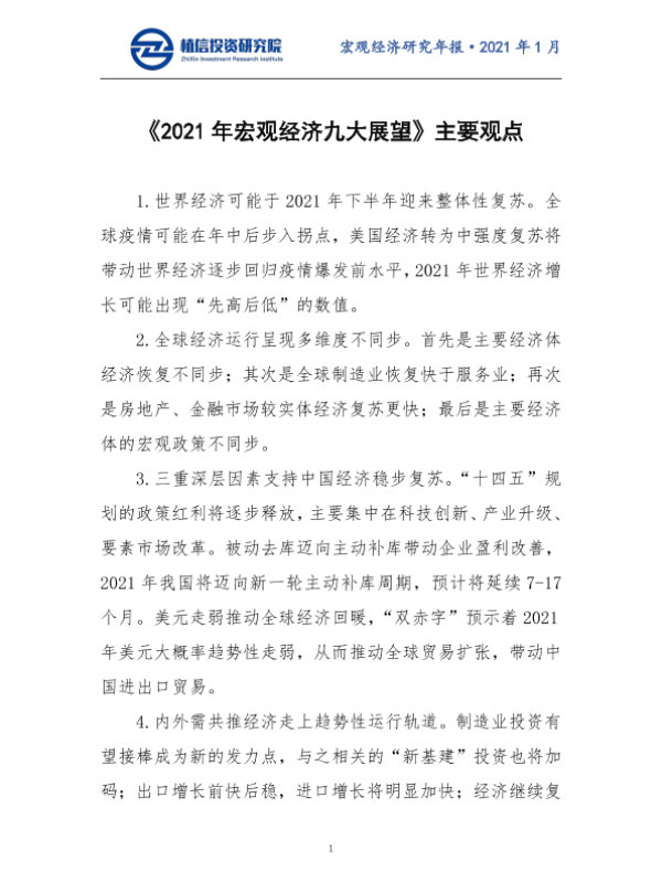 【植信投资研究院】【202101】2021年宏观经济九大展望-43页