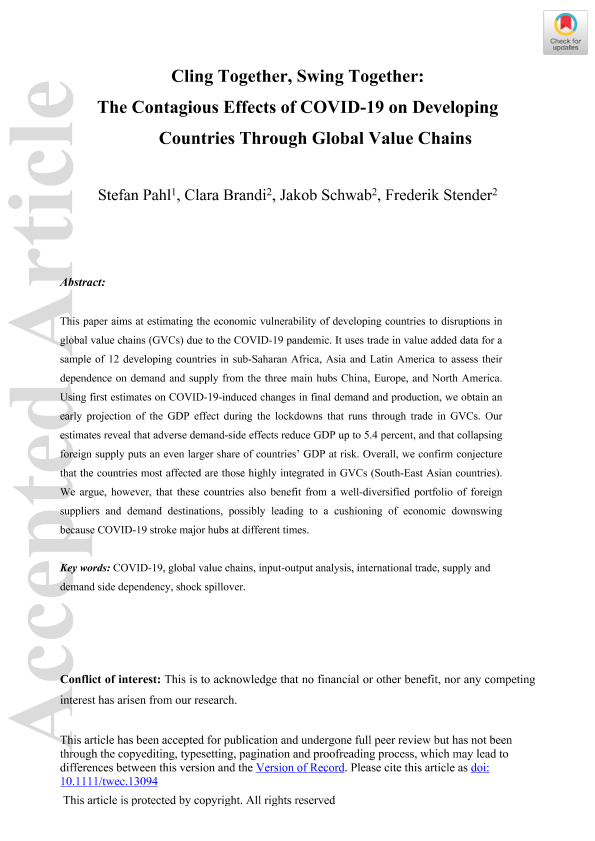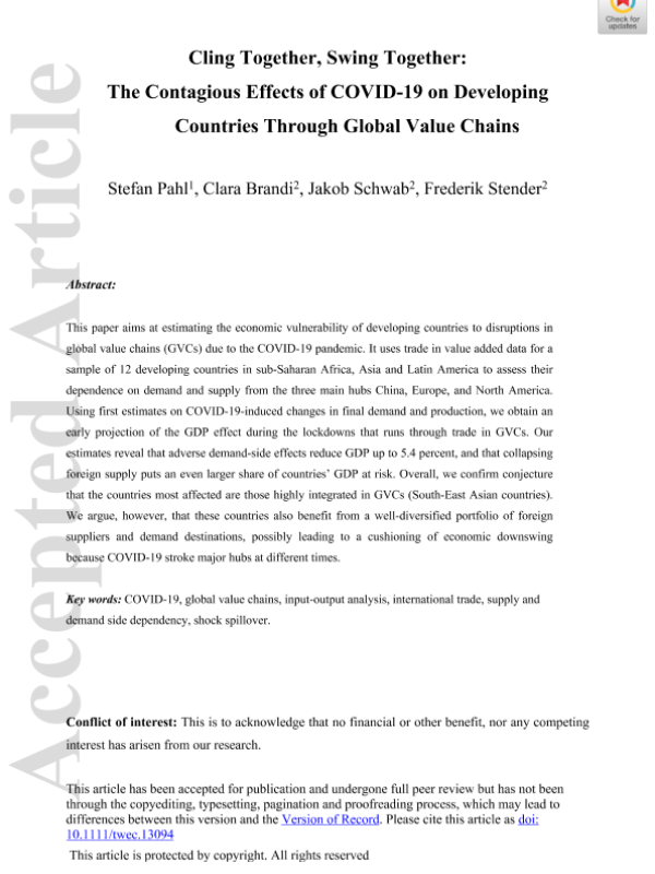 【German Institute for Global and Area Studies(GIGA)】【202101】Cling Together, Swing Together The Contagious Effects of COVID-19 on Developing Countries Through Global Value Chains-34页