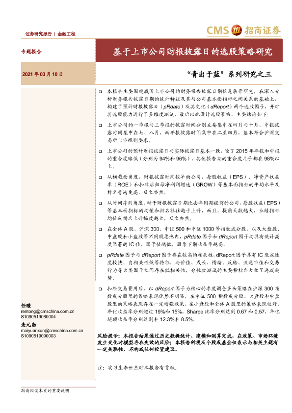 【海通证券】【20210310】“青出于蓝”系列研究之三:基于上市公司财报披露日的选股策略研究-26页