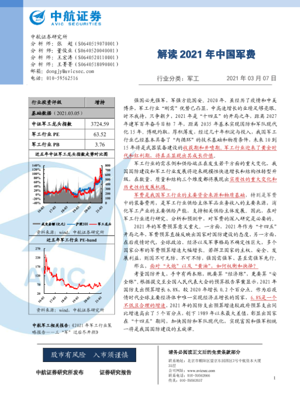 【中航证券】【20210307】军工行业:解读2021年中国军费-40页