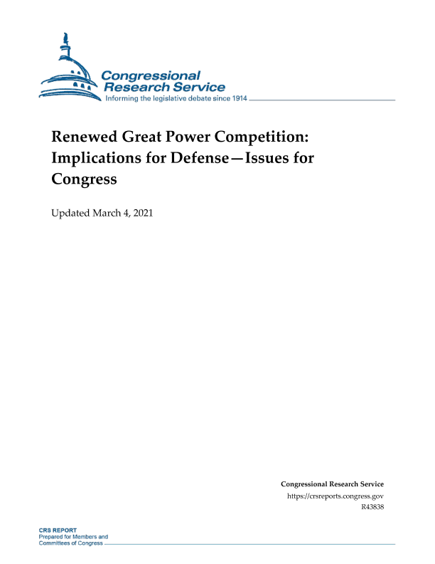 【Congressional Research Service】【20210304】新的大国竞争对国防问题的影响-55页