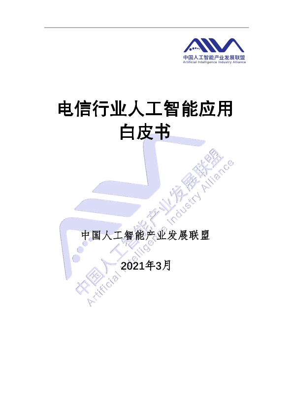 【中国人工智能产业发展联盟】【202103】电信行业人工智能应用白皮书-50页