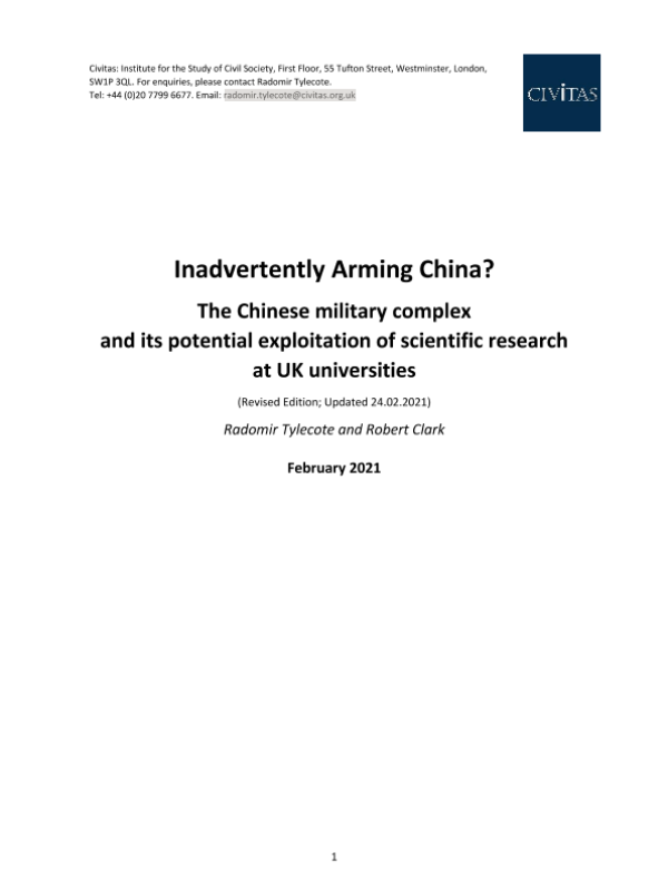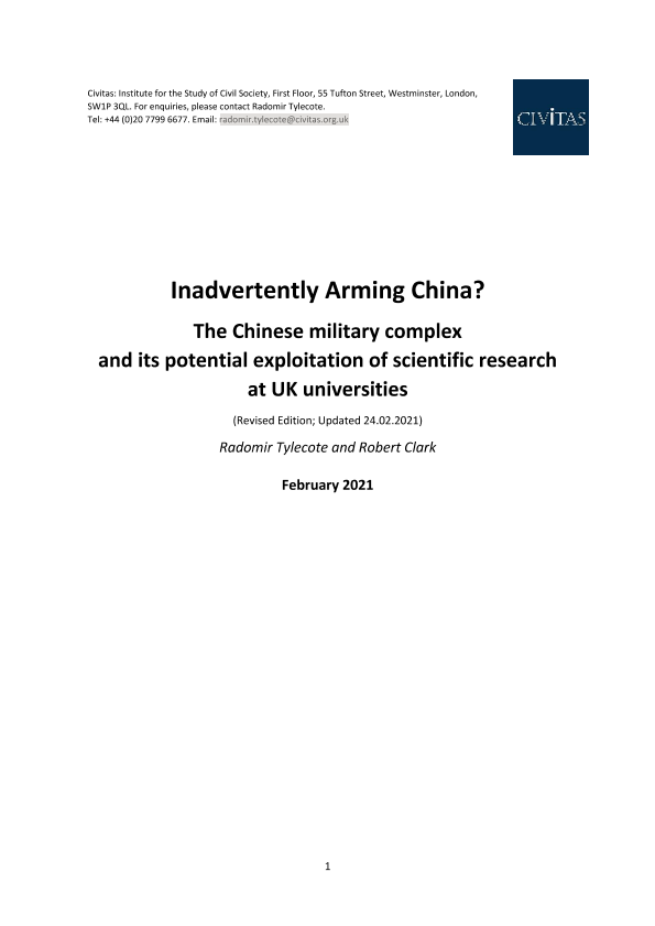 【Civitas Institute for the Study of Civil Society】【202103】CIVITAS-中国军事综合体及其在英国大学中的科学研究潜力-120页