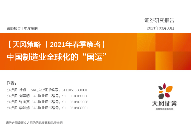 【天风证券】【20210308】2021年春季策略:中国制造业全球化的“国运”-52页