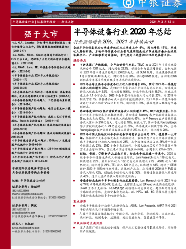 【中银证券】【20210312】半导体设备行业2020年总结:行业强劲增长20%,2021年持续向好-12页
