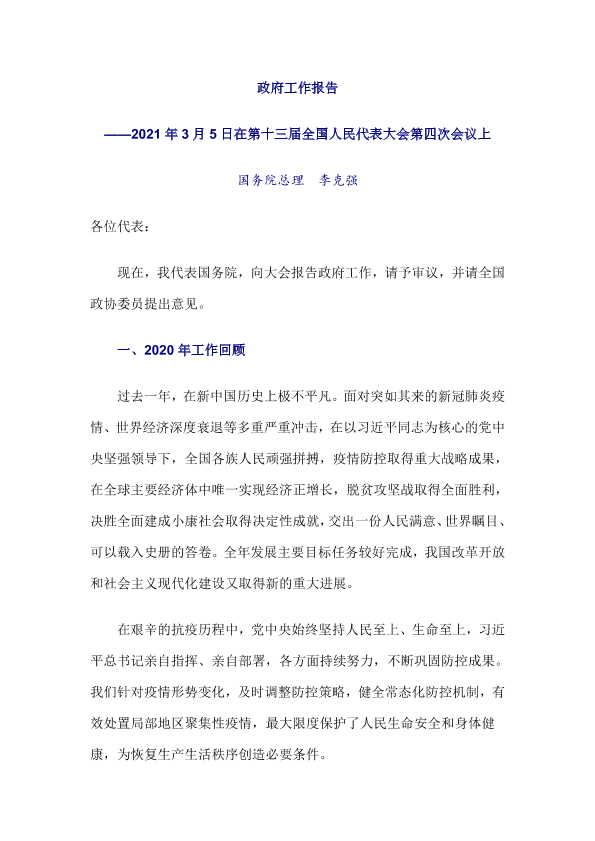 宏观政策 政府工作报告 疫情防控 社会保障 经济发展