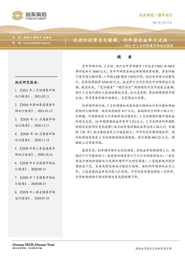 【远东资信】【202103】2021年2月利率债市场运行报告-15页