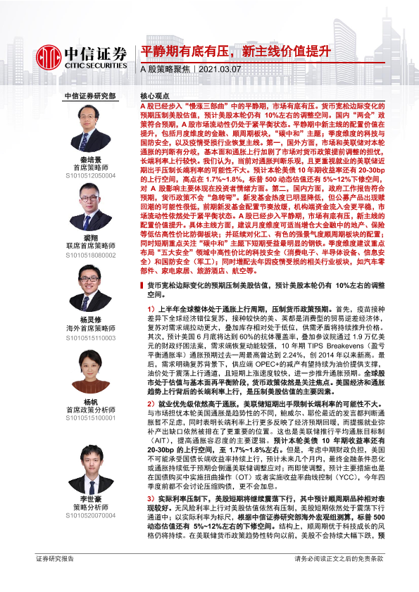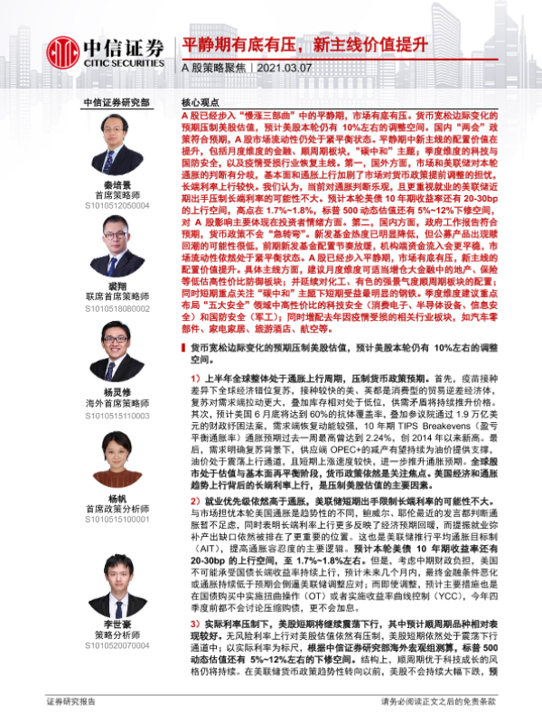 【中信证券】【20210307】A股策略聚焦:平静期有底有压,新主线价值提升-24页