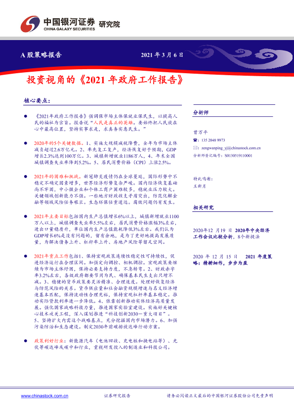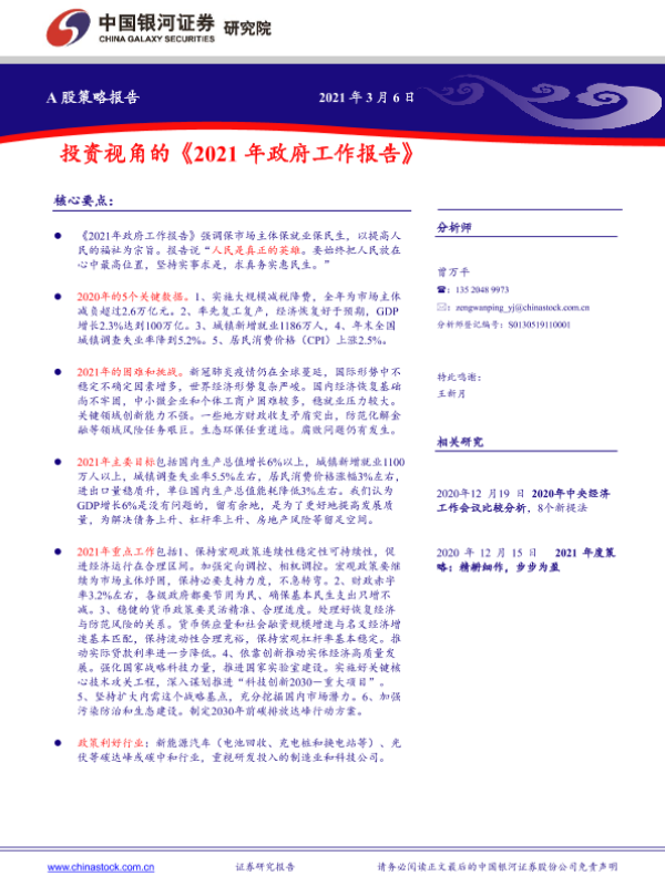【银河证券】【20210306】A股策略报告:投资视角的《2021年政府工作报告》-22页