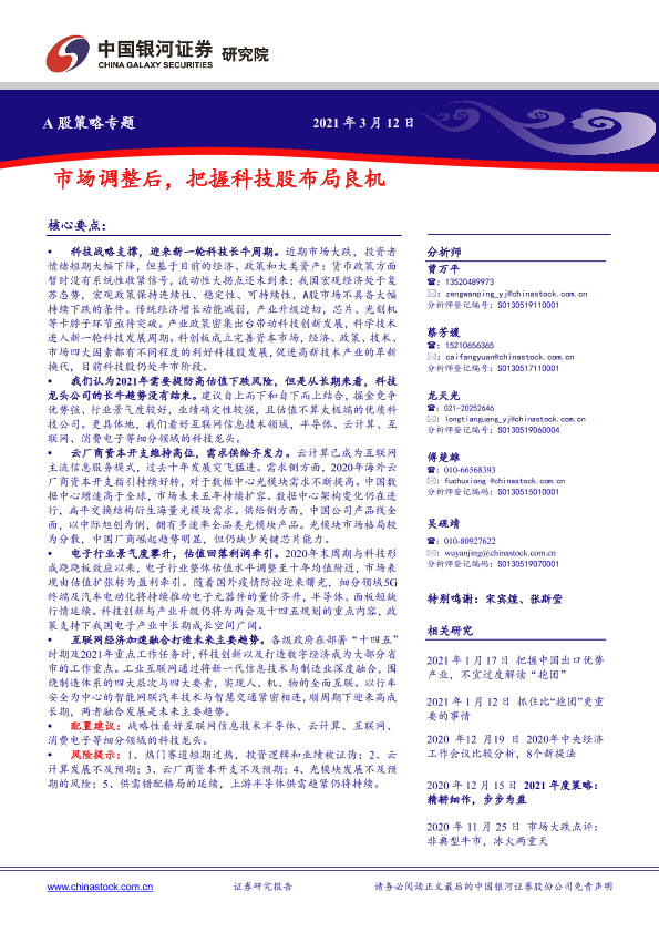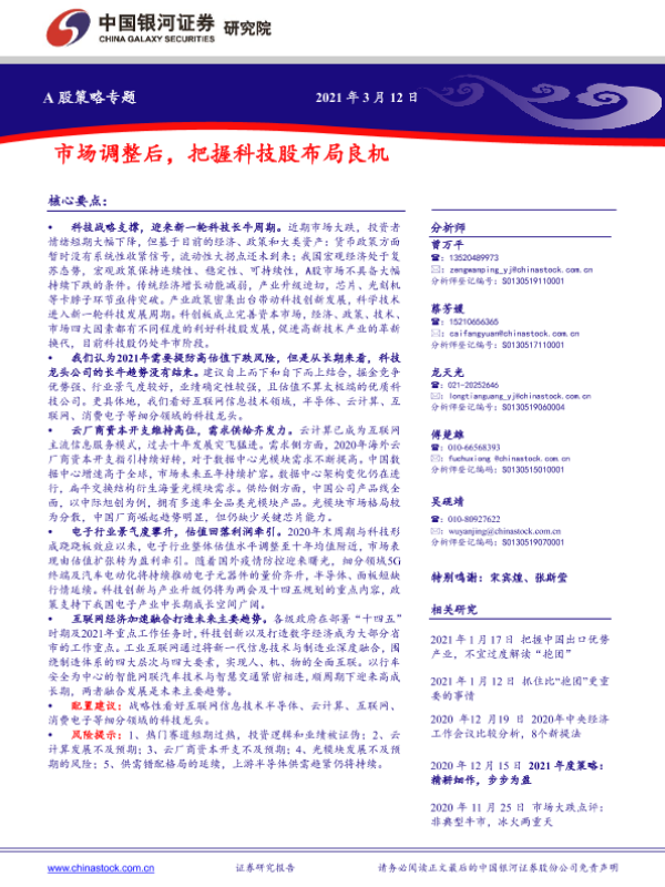 【银河证券】【20210312】A股策略专题:市场调整后,把握科技股布局良机-40页