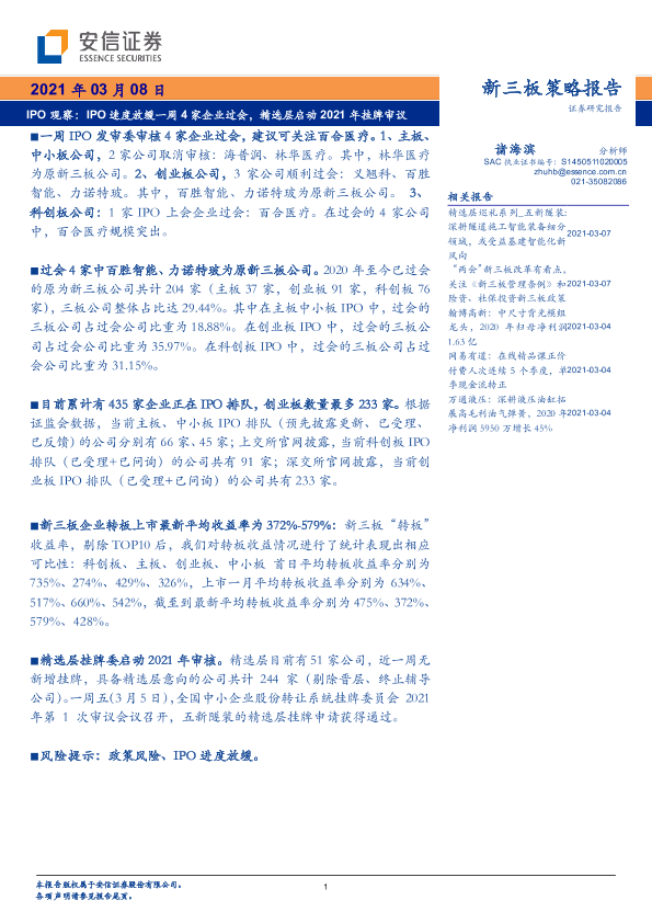 【安信证券】【20210308】IPO观察:IPO速度放缓一周4家企业过会,精选层启动2021年挂牌审议-17页