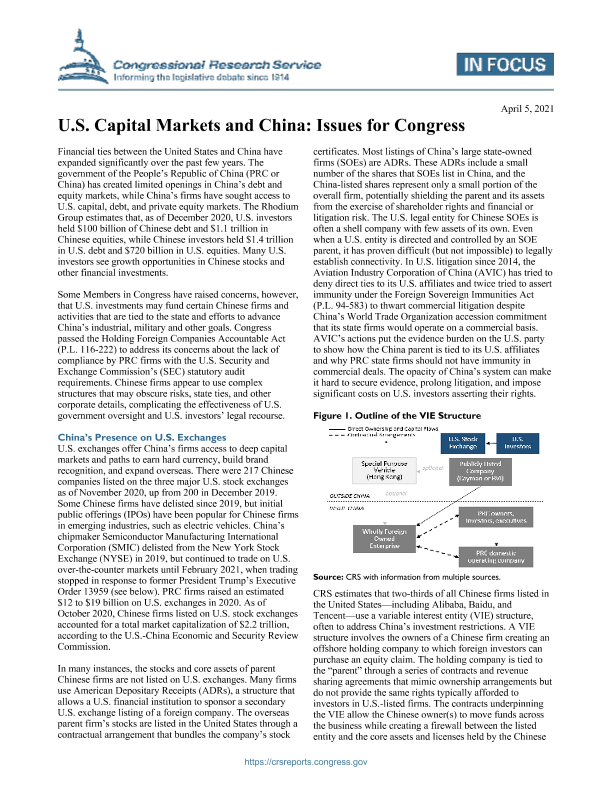 【Congressional Research Service】【20210405】U.S. Capital Markets and China Issues for Congress-3页